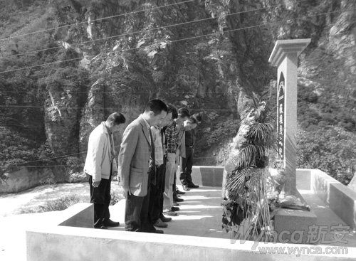 4月23日王偉董事長和阿壩州、汶川縣領(lǐng)導(dǎo)等向新落成的罹難員工紀念碑敬獻花籃。