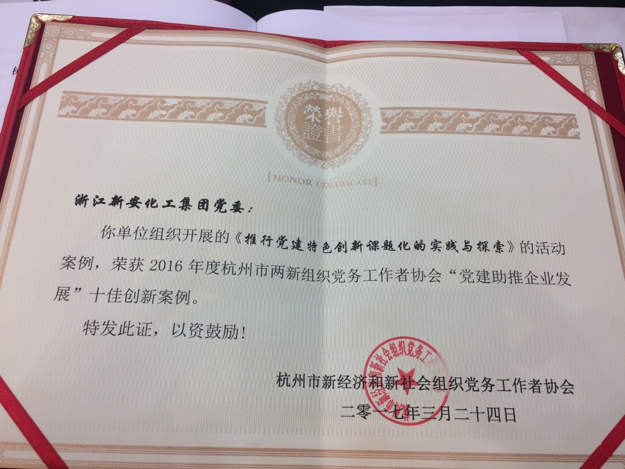 新安集團黨建工作榮獲杭州市“兩新”協(xié)會表彰
