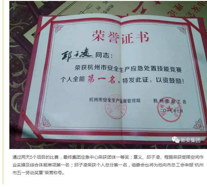 新安集團(tuán)獲2017年杭州市安全生產(chǎn)應(yīng)急處置技能競賽第一名