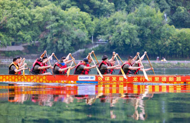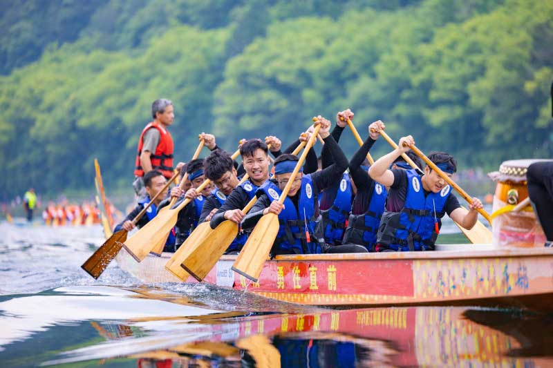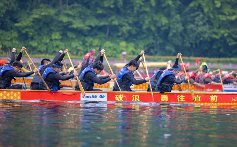 奮楫爭先啟新程,逆流而上譜新篇。5月31日,正值端午佳節,第九屆新安文化節龍舟賽活動盛大啟幕,新安股份領導吳嚴明、周曙光等親臨現場觀賽助陣。